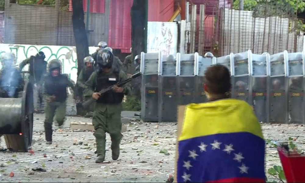 „Pentru tinerii Venezuelei. Nu mai vrem dictatură! De astăzi s-a terminat, avem un nou preşedinte. Numele lui este Juan Guaido!” au strigat manifestanții.