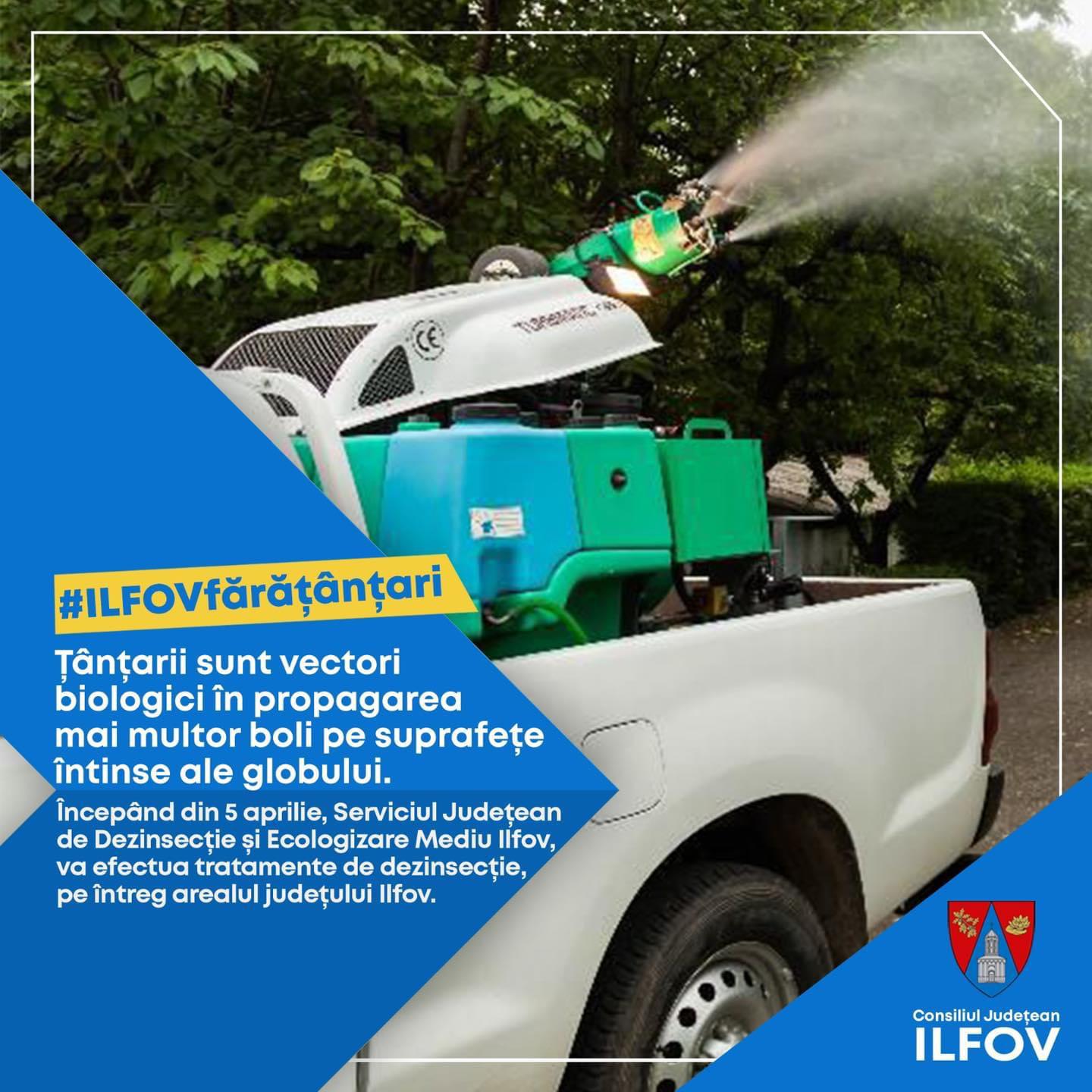 Pentru a putea combate eficient apariția populației de țânțari, Serviciul Județean de Dezinsecție și Ecologizare Mediu Ilfov, din cadrul Consiliului Județean Ilfov, va efectua, în baza protocolului încheiat, tratamente de dezinsecție pe întreg arealul județului Ilfov.