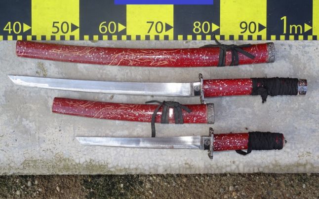 80 de proiectile metalice, două săbii, o puşcă cu...