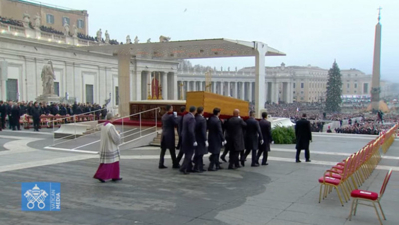 VIDEO Sute de mii de credincioși au asistat în tăcere la funeraliile fostului papă Benedict al XVI-lea. Trupul, închis în trei sicrie