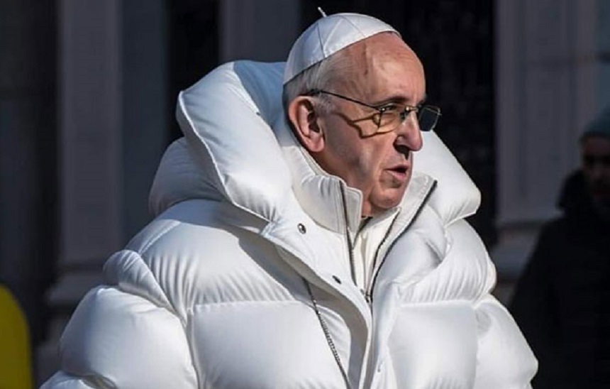 Imaginile cu Papa Francisc îmbrăcat într-o pufoaică albă de...