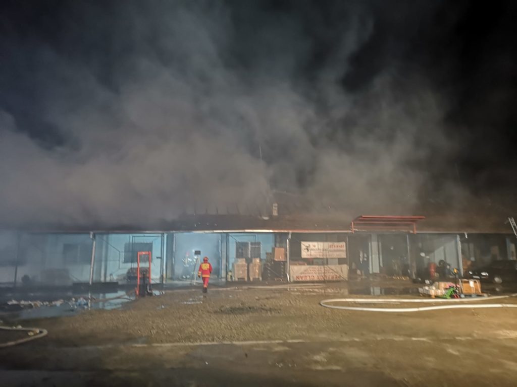 FOTO Incendiu la o hală de deşeuri din zona industrială a Sibiului. A fost transmis mesaj RO-Alert