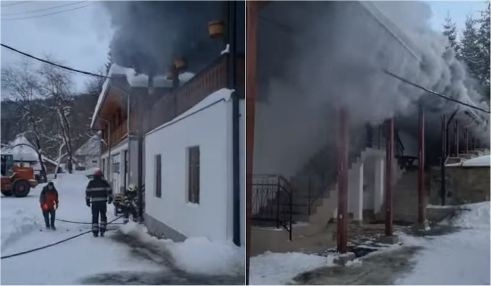 Un incendiu a cuprins chiliile Mănăstirii Nucet, din județul...