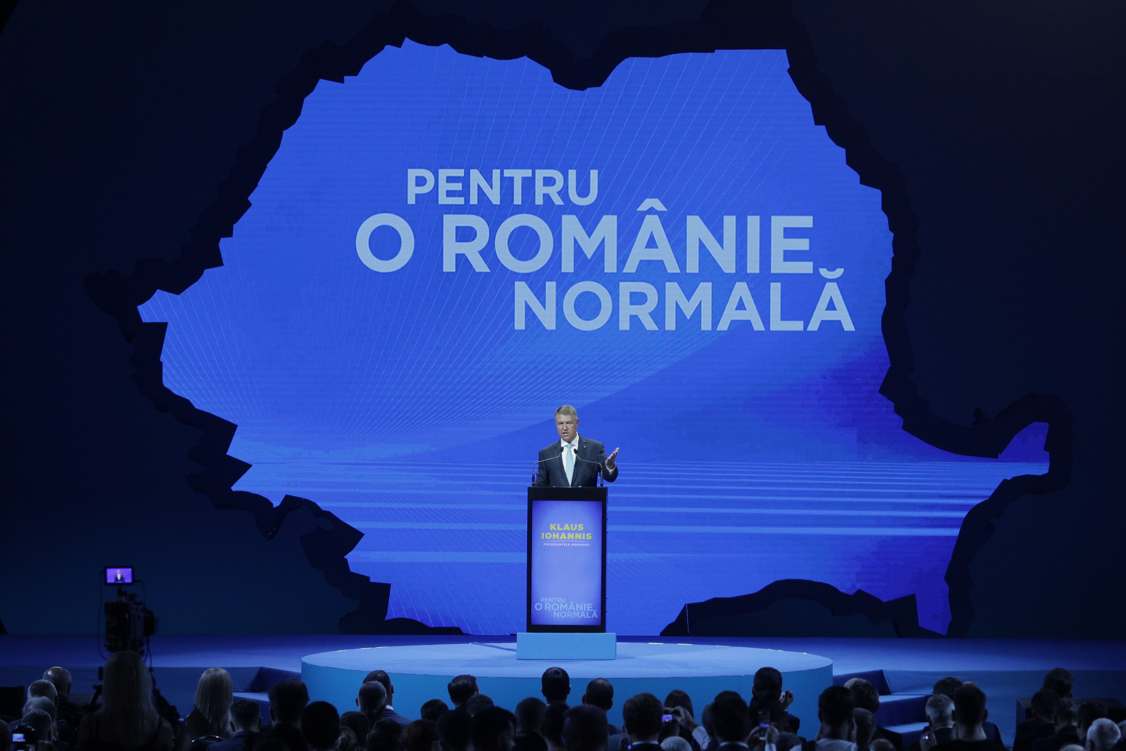 19.04 Președintele Klaus Iohannis își face apariția în sala Romexpo. Pe ecranul uriaș rulează imagini cu președintele României în cele mai importante momente ale ultimilor ani.