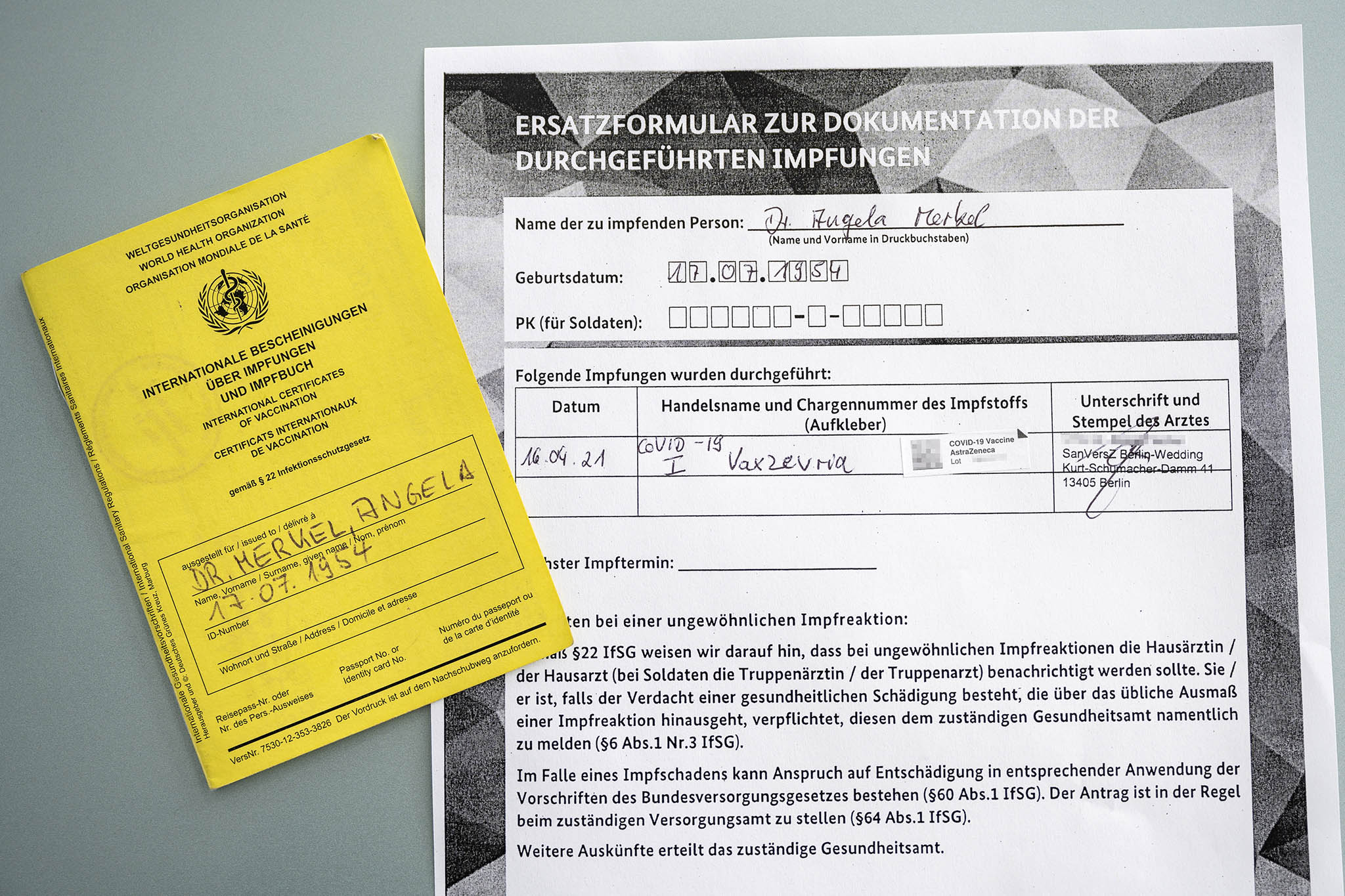 Seibert postează în mesaj certificatul de vaccinare al canelarului. ”Vaccinarea este cheie în ieşirea din pandemie”, subliniază cancelarul.