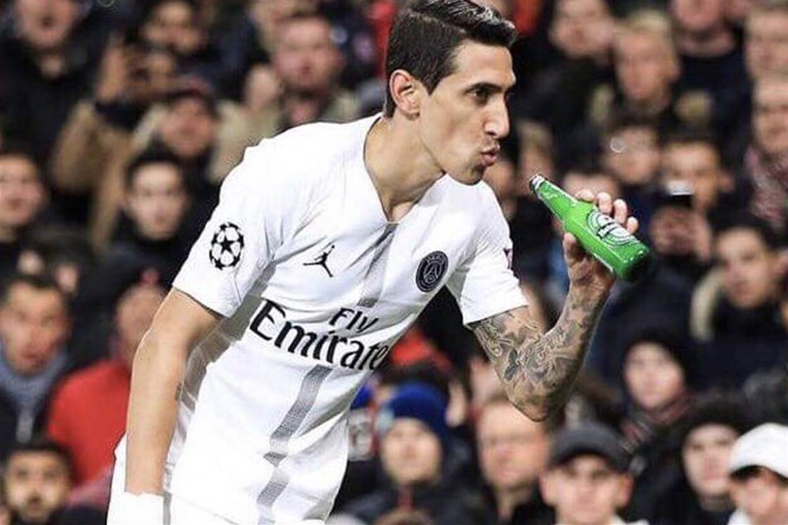 Unul dintre cei mai buni jucători de pe teren în meciul de marţi seara, Di Maria s-a trezit la un moment dat cu o sticlă de bere plină aruncată din tribună în apropierea sa. Mijlocaşul lui PSG a ridicat sticla şi a simulat că ar bea din sticlă, după care a aruncat-o.