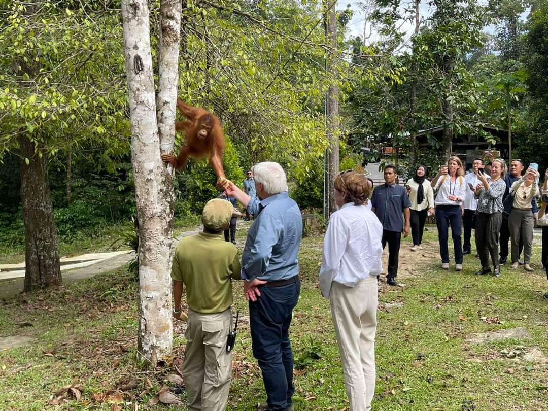 Achtung, Affe: Am Schluss seiner Südostasien-Reise musste Bundespräsident Frank-Walter Steinmeier vor Orang-Utan Edwin fliehen. https://t.co/HpXI4TAqJs
