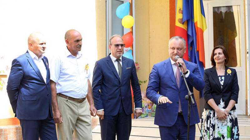 Inaugurarea clădirii renovate a grădiniței din satul Sadova l-a forțat pe șeful statului moldovean să aducă mulțumiri Guvernului României, după ce, în discursul său politic, Bucureștiul a fost ținta a nenumărate atacuri.