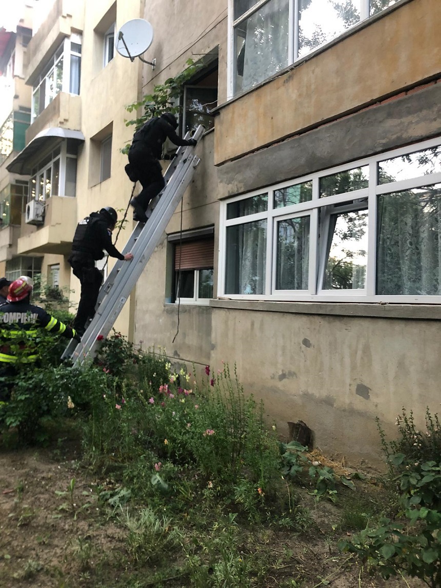 Sursa citată a menţionat că forţele de ordine au analizat situaţia şi au decis să pătrudă în locuinţă. Astfel, cu ajutorul unei scări, poliţiştii au reuşit să intre în locuinţa situată la etajul 1, pe o fereastră a apartamentuiui.