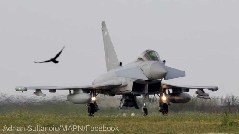 Patru aeronave Eurofighter Typhoon ale Forţelor Aeriene Regale Britanice...