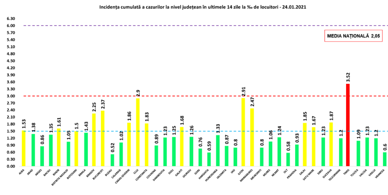 Judeţul Timiş se menţine în zona roşie, cu 3,9 cazuri de infectări cu SARS-CoV-2 la mia de locuitori