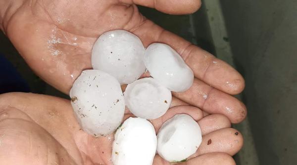 FOTO Buzău: Grindină cât pumnul în judeţ! Bucăţile mari de gheaţă au distrus mai multe maşini