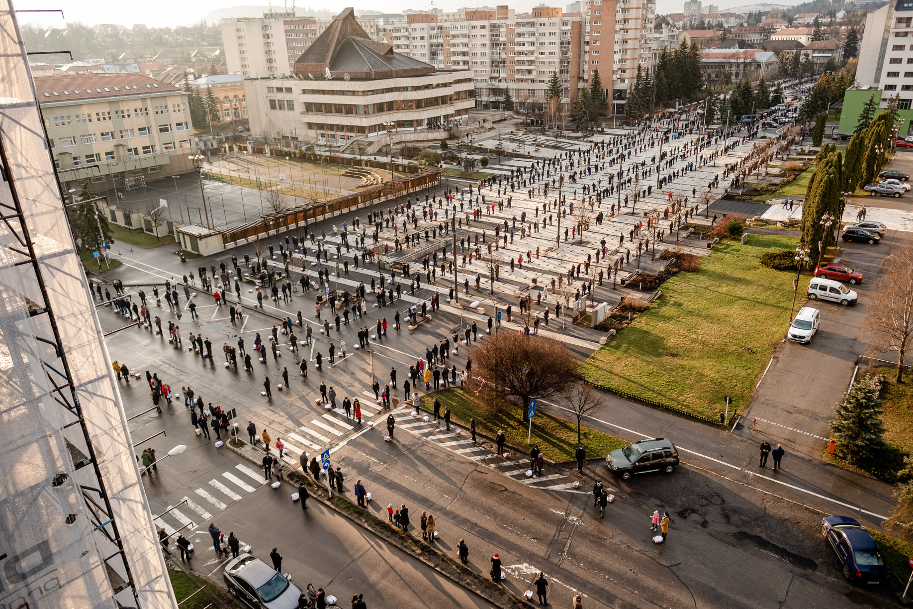 Dacă în alţi ani ceremonialul se desfăşura doar pe platoul din faţa Palatului Administrativ din Miercurea Ciuc, autorităţile au decis, în acest an, să extindă zona, pentru păstrarea distanţei fizice, scrie Agerpres.
