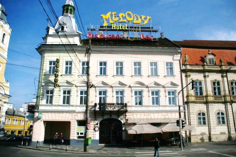 Clădirea Hotelului Melody a fost ridicată la jumătatea secolului al XIX-lea. Înainte de apariția clădirii hotelului, pe acel loc existau două clădiri în care funcționaseră Biroul Fiscal al Clujului, care s-a transformat ulterior în berăria ,,Fiskus” și o a doua clădire în care se afla hotelul ,,Pannónia”. În anul 1890, această clădire a Clujului a fost reconstruită după planurile arhitecților Antal Oriold și Benedek Endstrasser. Mai exact cele două construcții au fost unificate, ceea ce a conferit ansambului monumentalitatea de astăzi. În noua clădire va funcționa hotelul Központi Szállo, adică Hotel Central.