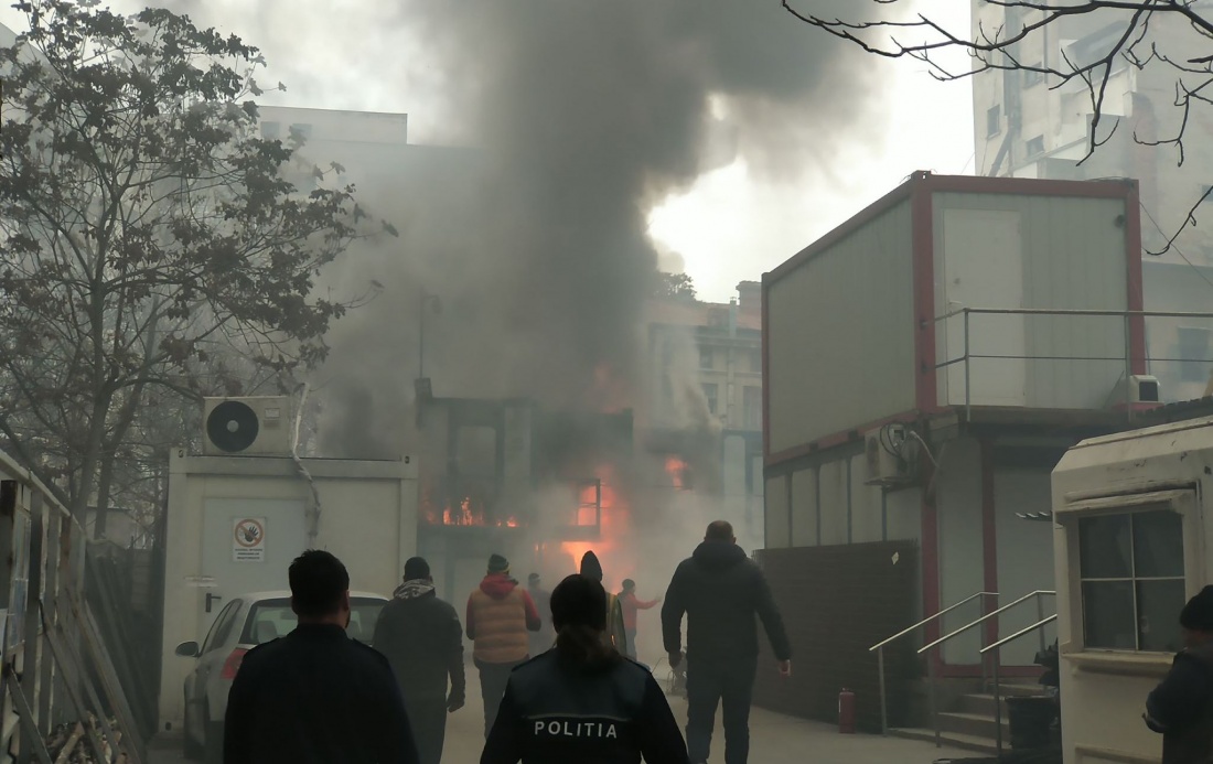 Incendiu în centrul Bucureștiului! Șantierul de la fostul sediu al Primăriei Sector 5 a luat foc