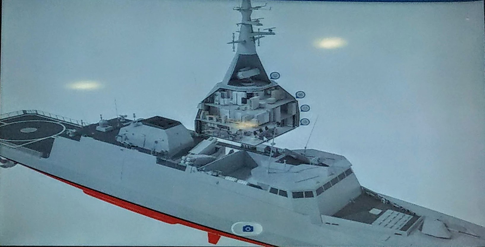 Sistemul cu un singur catarg permite practic o acoperire la 360 de grade a senzorilor fără să existe interferențe cu alte elemente structurale ale navei. Radarul este poziționat sub senzori, acoperit pentru protecție cu o structură din materiale composite. Dedesubt se află compartimentele unde acționează o parte din echipaj: centrul de comandă (CIC) precum și cel de conducere a focului.
