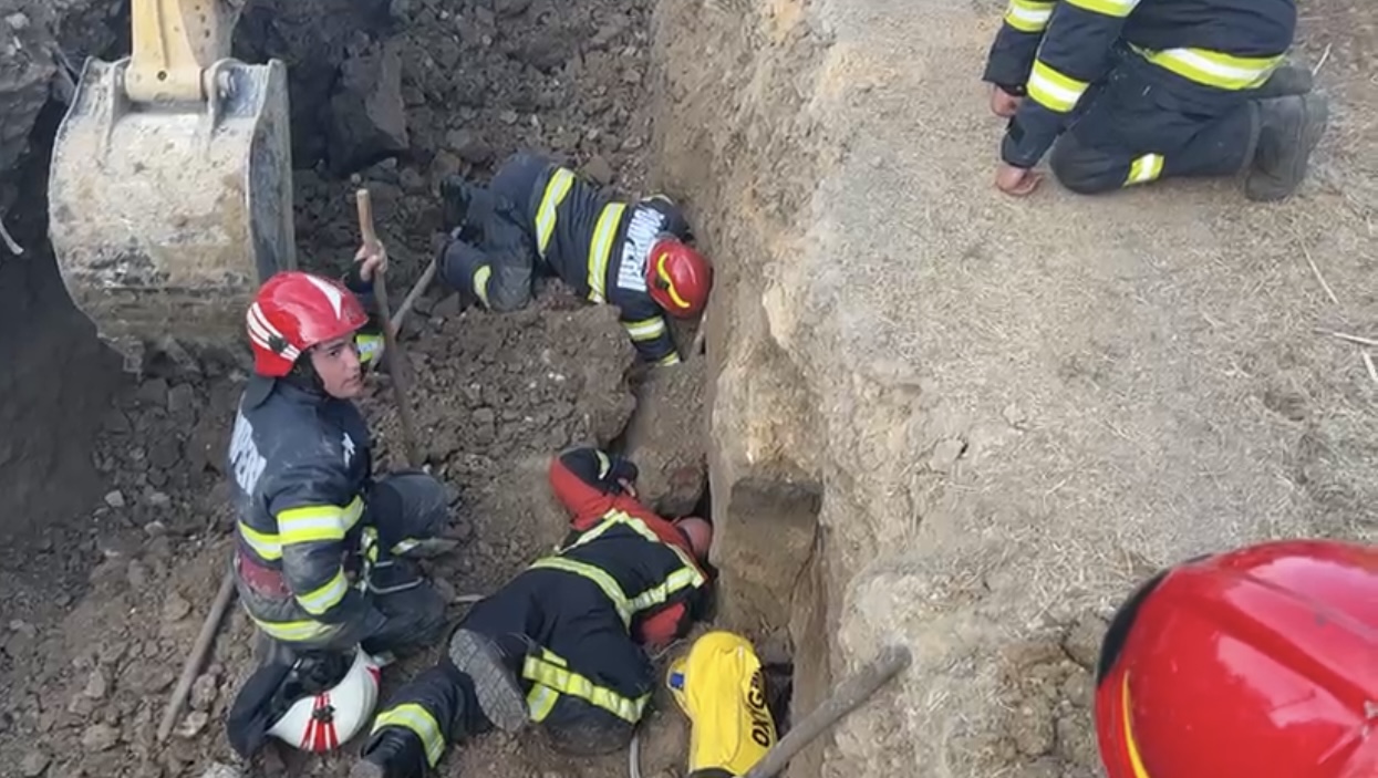 Pompierii intervin, vineri seară, pentru salvarea a două persoane prinse sub un mal de pământ, în localitatea Castelu, judeţul Constanţa. Una dinte victime este acoperită în totalitate de pământ, fiind inconştientă, dar cealaltă este conştientă şi cooperantă, primind oxigen de la salvatori, potrivit news.ro.