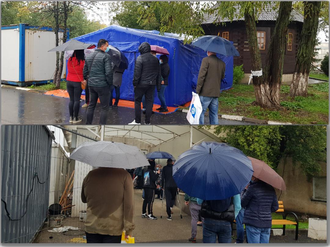 Astfel, pacienții trebuie să aștepte la cortul de triaj, unde intră câte unul să li se ia temperatura și sunt întrebați la ce secție a spitalului vor să meargă. Aici se așteaptă cel mai mult timp în ploaie, nefiind niciun loc acoperit, potrivit ziarulincomod.ro.