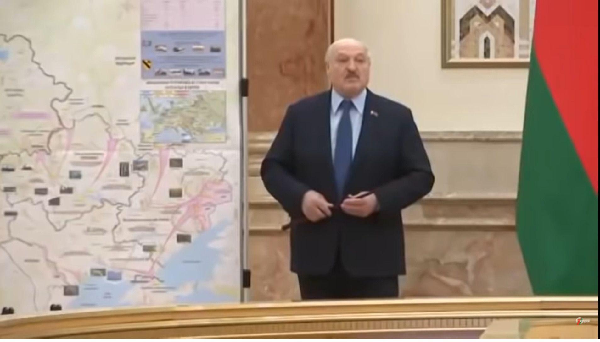 Aleksandr Lukaşenko le-a prezentat marţi generalilor săi o hartă care indica direcţii de atac asupra Ucrainei, împărţită în patru zone, aceasta arătând mişcări de trupe în direcţia Transnistriei. Imaginile video înregistrate la Consiliul de Securitate al Belarusului, care se întrunise marţi, au fost publicate pe canalul Telegram al preşedinţiei belaruse şi preluate de numeroase canale media internaţionale.