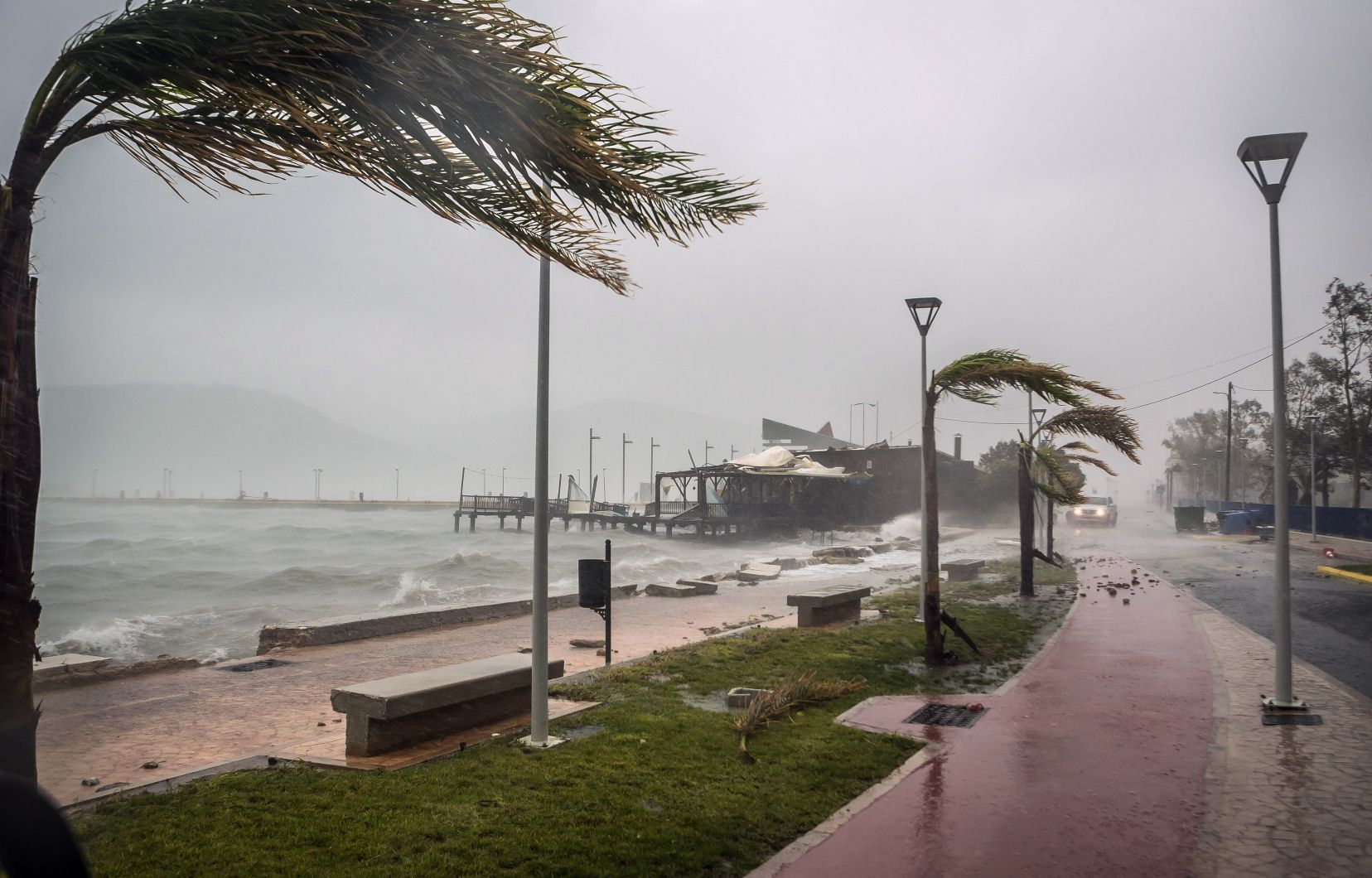 La Mouzaki o femeie de 40 de ani a dispărut după ce maşina sa a fost dusă de apele râului Pamissos. În Karditsa şi în alte oraşe din regiune au avut loc pene de curent şi s-a întrerupt furnizarea de apă. S-au înregistrat inundaţii şi copaci au fost doborâţi de vânt. De asemenea, numeroase clădiri au fost devastate, iar pompierii au fost chemaţi sâmbătă pentru a salva sute de persoane din case inundate.